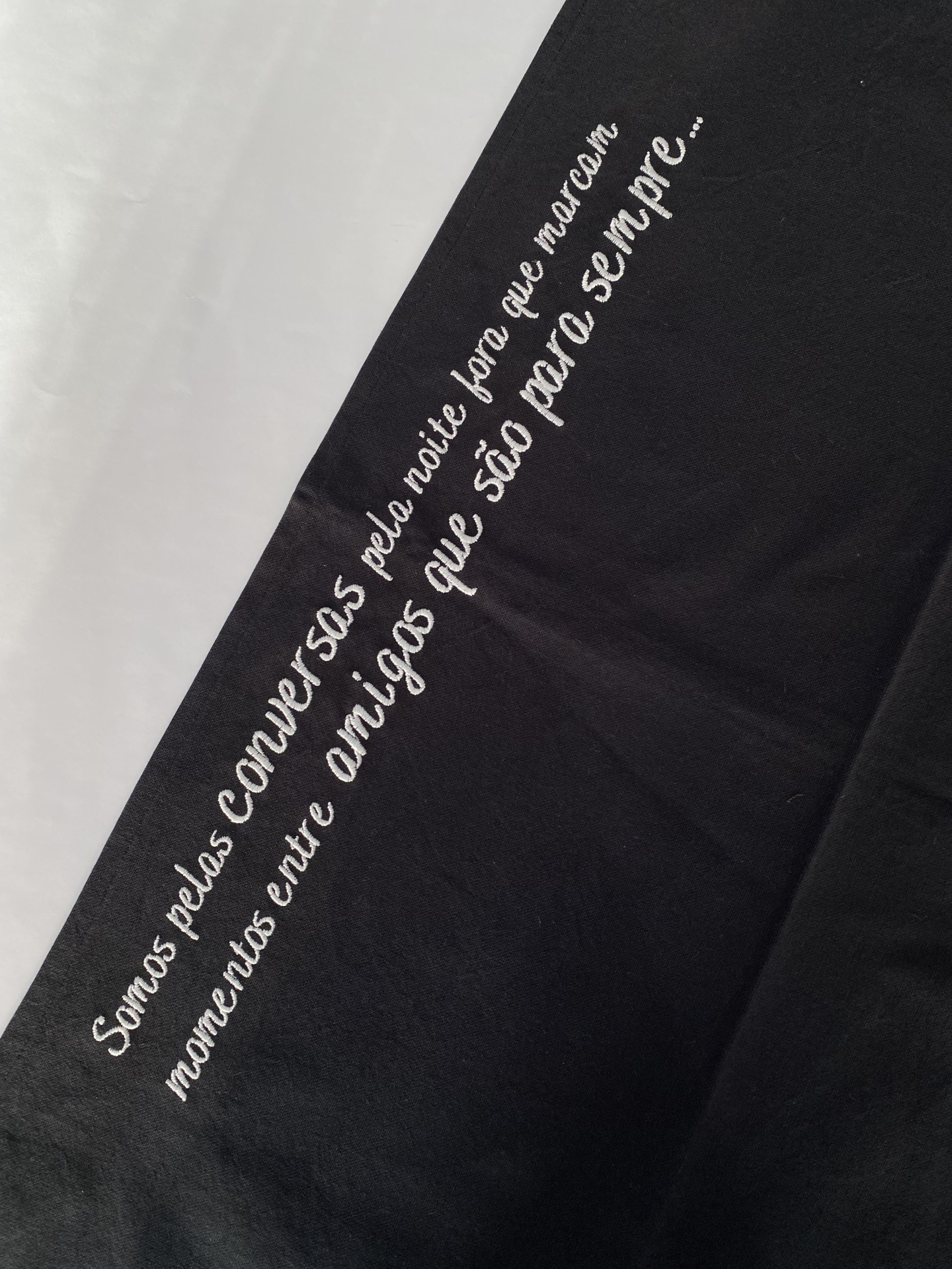 Home Caminhos de Mesa CAMINHO DE MESA PRETO ''SOMOS PELAS CONVERSAS PELA NOITE FORA'' CAMINHO DE MESA PRETO ''SOMOS PELAS CONVERSAS PELA NOITE FORA'' 25,00 € Desconto de %. Comprar Contactar Caminho de mesa preto bordado em tecido 100% algodão. Fazem qualquer mesa bonita. Dimensões aproximadas (comprimento x altura): 132 cm x 49 cm. Tags caminho de mesacaminho de mesa bordadomesa bonita Características Partilhar