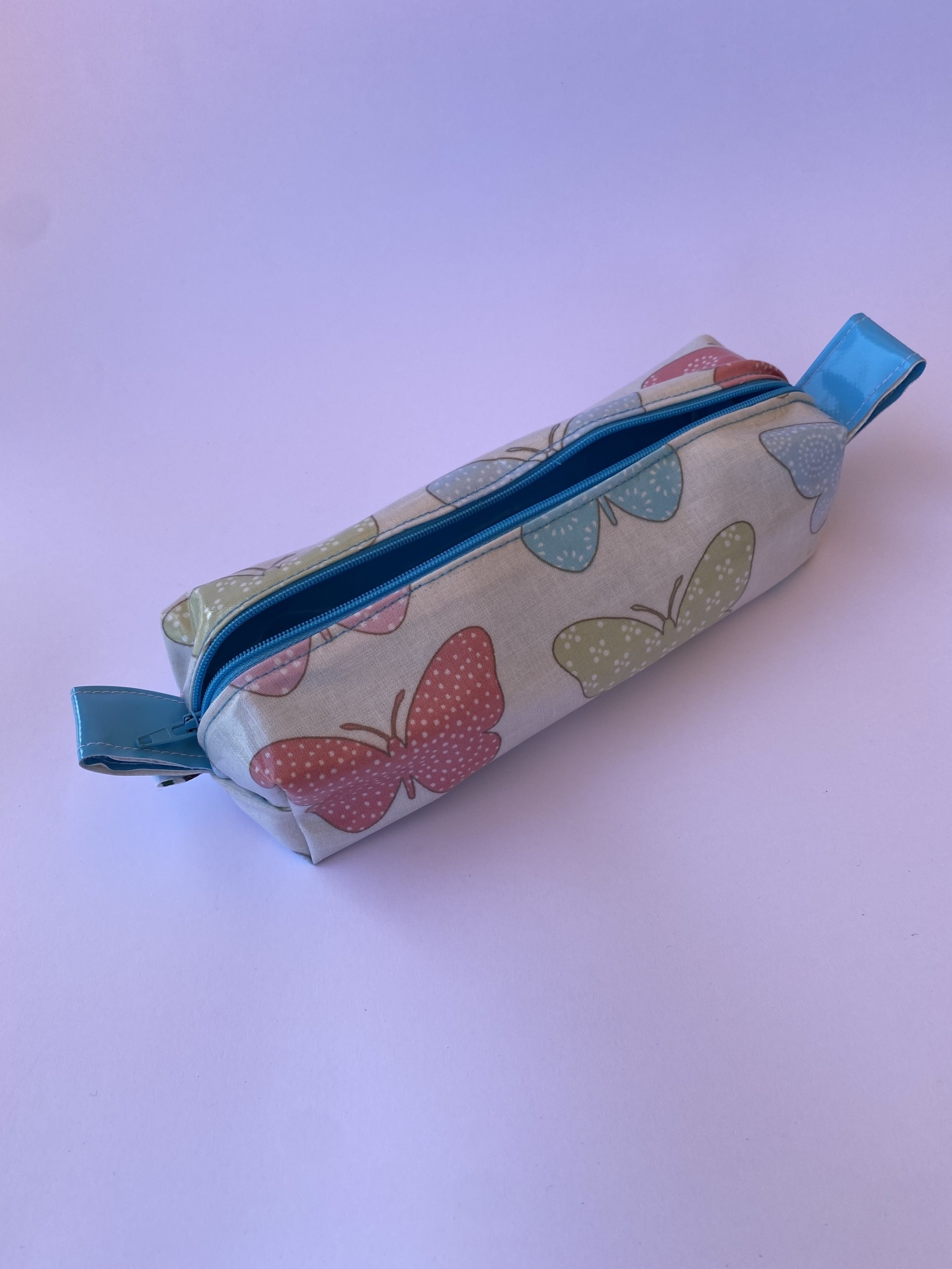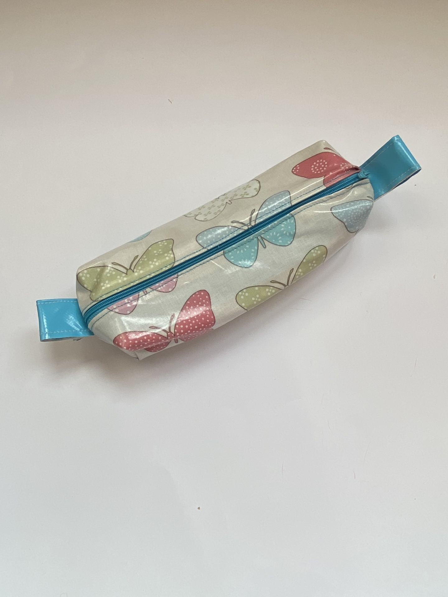 Estojo tecido plastificado c/ borboletas.
