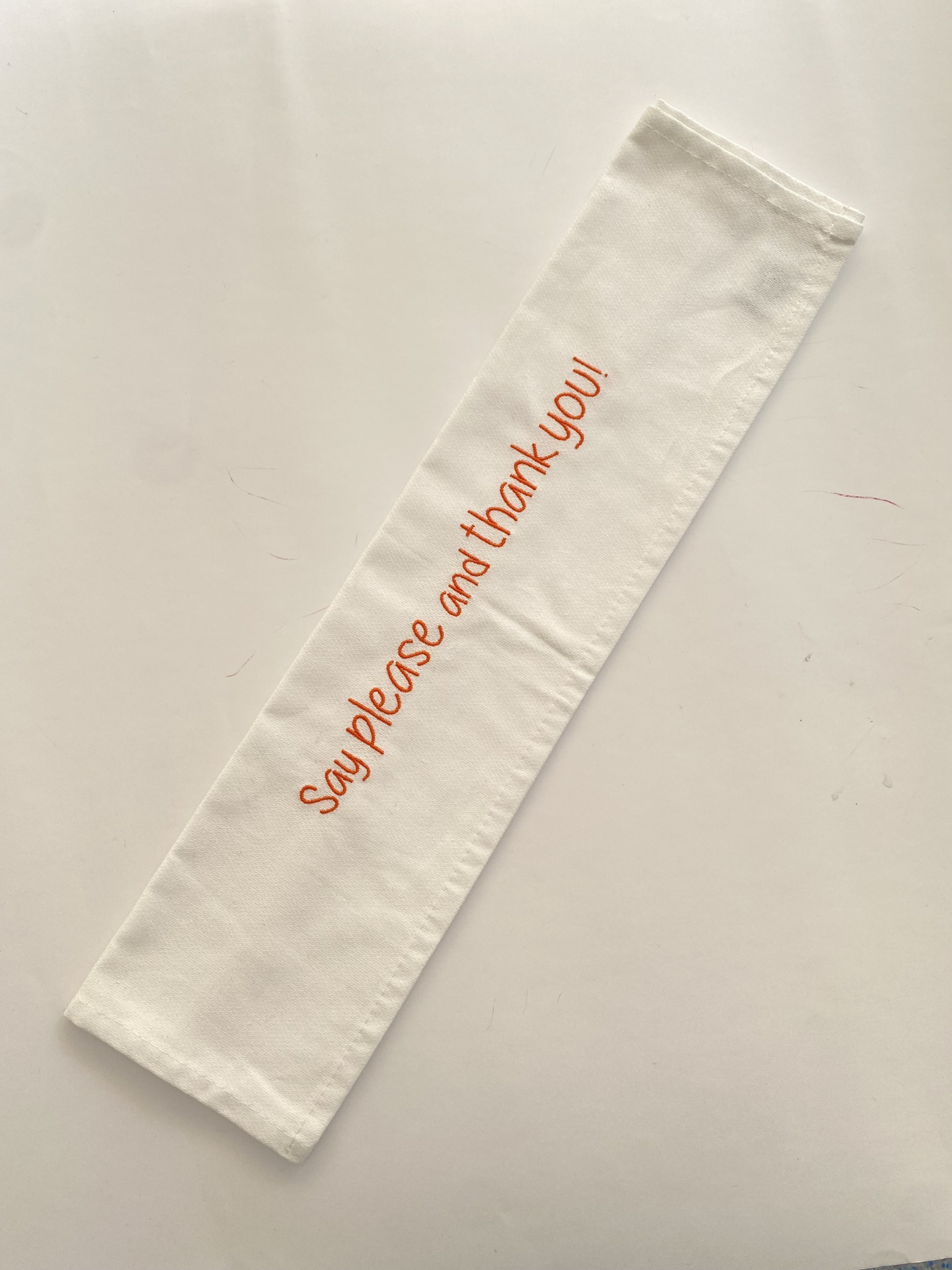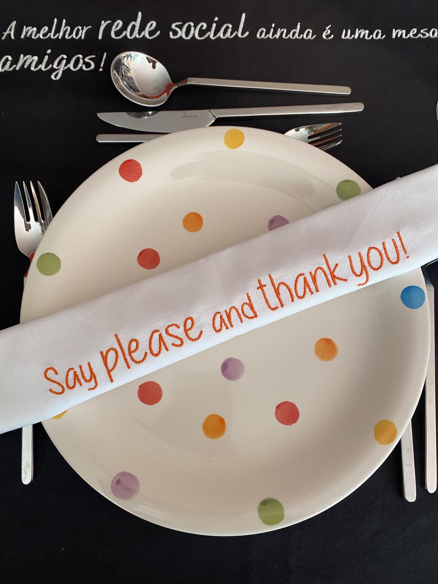 Home Guardanapos GUARDANAPO ''SAY PLEASE AND THANK YOU'' GUARDANAPO ''SAY PLEASE AND THANK YOU'' 7,50 € Desconto de %. Comprar Contactar Guardanapo branco com frase bordada a amarelo. Guardanapos de pano bordados fazem sempre uma mesa bonita! Dimensões aproximadas: 50cm x 48cm Tags Guardanaposguardanapos bordadosguardanapo personalizado Características Partilhar