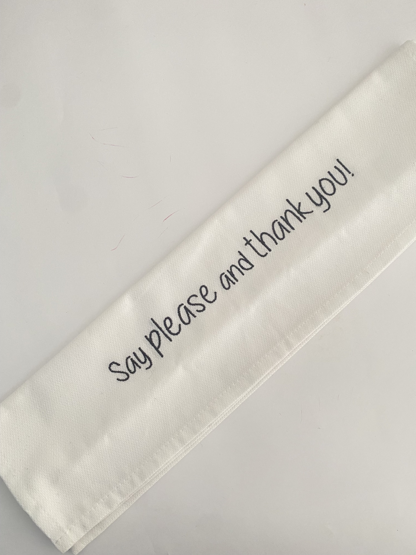 Home Guardanapos GUARDANAPO ''SAY PLEASE AND THANK YOU'' GUARDANAPO ''SAY PLEASE AND THANK YOU'' 7,50 € Desconto de %. Comprar Contactar Guardanapo branco com frase bordada a amarelo. Guardanapos de pano bordados fazem sempre uma mesa bonita! Dimensões aproximadas: 45,5cm x 49cm Tags Guardanaposguardanapos bordadosguardanapo personalizado Características Partilhar