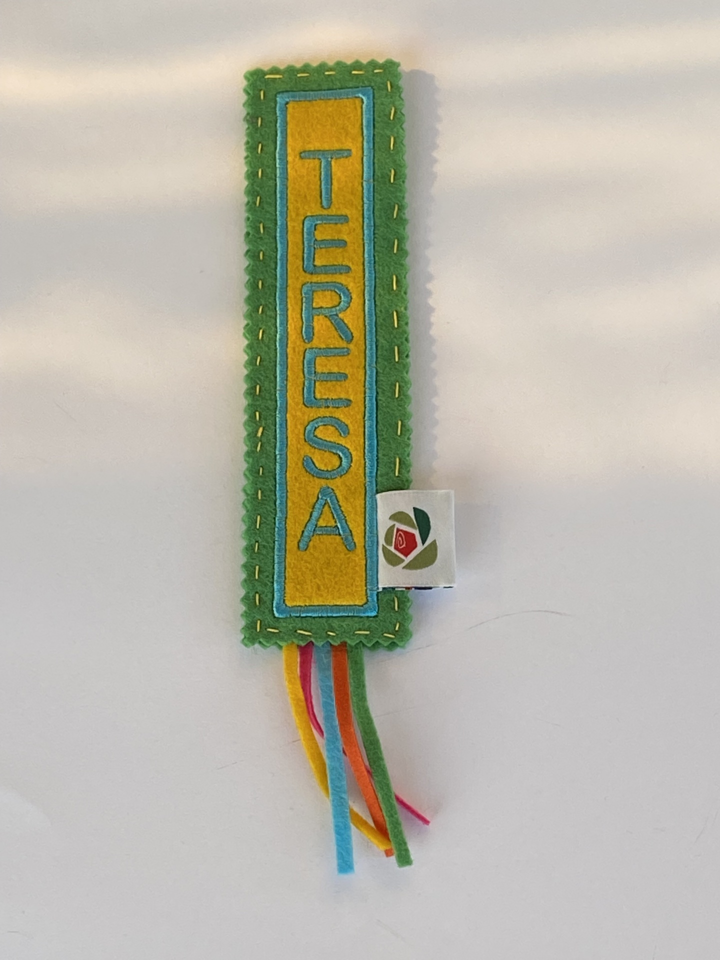 Home Marcadores de Livros MARCADOR DE LIVRO ''TERESA'' MARCADOR DE LIVRO ''TERESA'' 7,50 € Desconto de %. Comprar Contactar Marcador de livro feito em feltro. Personalizado com o nome ''Teresa'' bordado. Dimensões aproximadas (comprimento x altura): 25 cm x 4,5 cm Tags livro bordadolivro personalizadomarcador livro nomemarcador livro bordadomarcador livro Características Partilhar