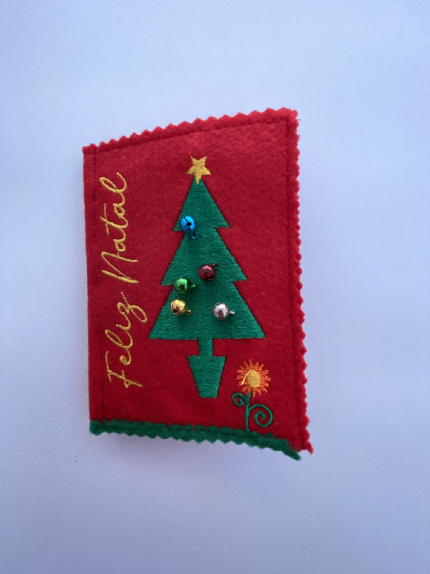 Home Porta-Agulhas PORTA-AGULHAS ''ÁRVORE DE NATAL ENCARNADO GUIZOS'' PORTA-AGULHAS ''ÁRVORE DE NATAL ENCARNADO GUIZOS'' 12,50 € Desconto de %. Comprar Contactar Feito em feltro encarnado no exterior e verde no interior. As bolas da árvore de Natal são guizos. Traz agulhas de coser. Serve para guardar as agulhas de coser/bordar. Dimensões aproximadas (comprimento x altura): 8 cm x 11,5 cm Tags porta-agulhasagulhasporta-agulhas bordadoárvore de natal Características Partilhar
