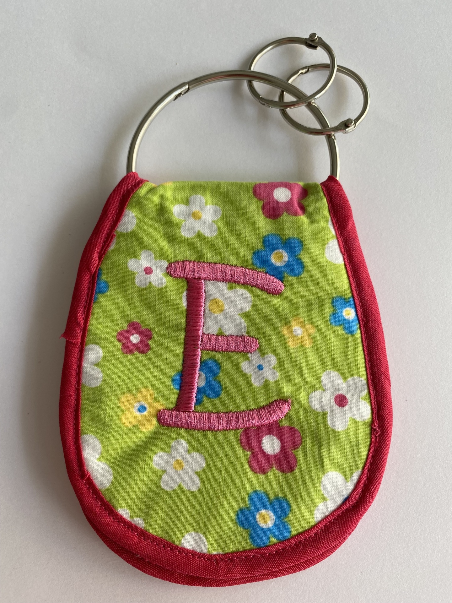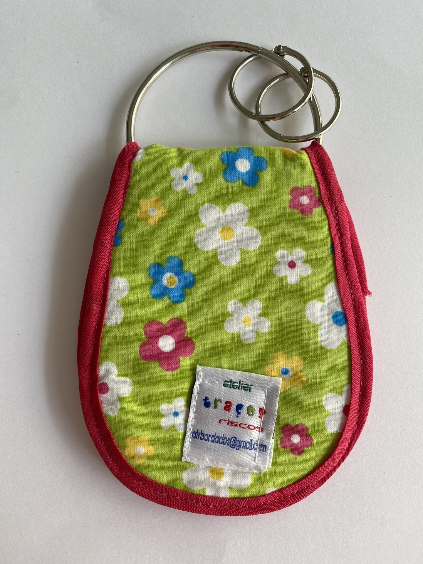 Home Porta-Chaves PORTA-CHAVES PORTA-CHAVES 5,00 € Desconto de %. Comprar Contactar Porta-chaves feito em tecido. Tem 1 argola grande e 2 pequenas para colocar as chaves. Tem dois bolsos no interior, tendo um deles fecho para colocar o dinheiro. Personalizado com uma inicial bordada. Dimensões aproximadas (comprimento x altura): 10 cm x 12 cm Tags porta-chavesporta-chaves bordado Características Partilhar