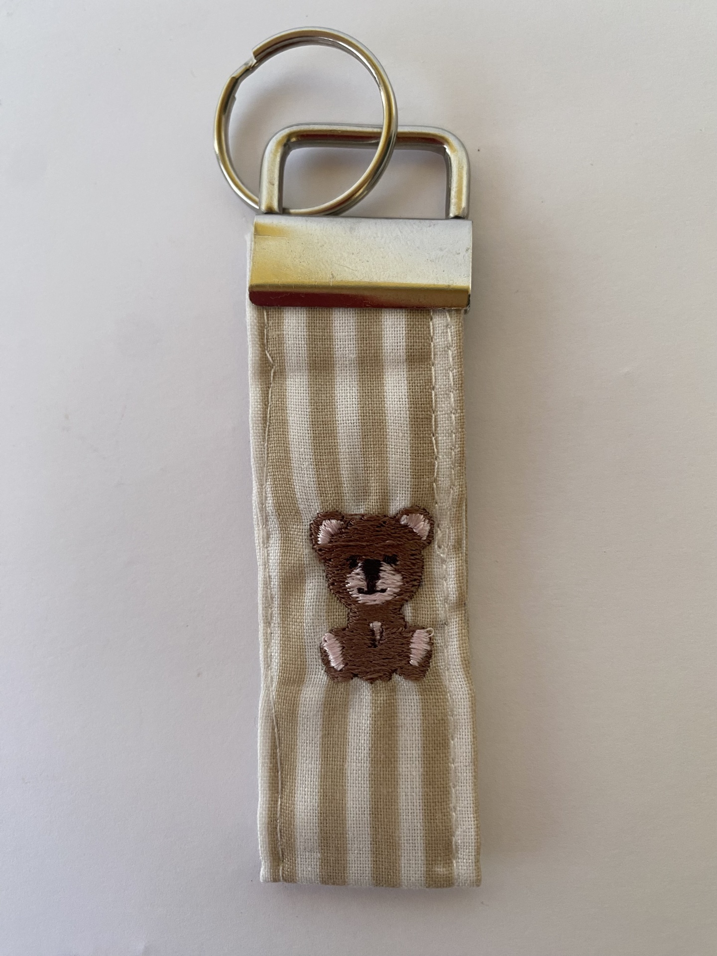 Home Ilustração PORTA-CHAVES URSINHOS PORTA-CHAVES URSINHOS 6,00 € Desconto de %. Comprar Contactar Porta-chaves com a ilustração de um ursinho bordado. Feito em tecido às riscas bege e brancas. Complete o conjunto com os restantes elementos da coleção dos ursinhos! Os artigos podem apresentar pequenas diferenças uns dos outros uma vez que são feitos à mão. Dimensões aproximadas: 9,5 cm x 3 cm Marca URSINHOS Características Partilhar