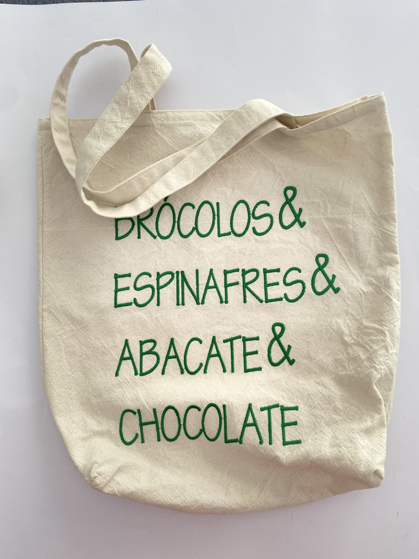 Home Frases TOTE BAG CHOCOLATE TOTE BAG CHOCOLATE 25,00 € Desconto de %. Comprar Contactar Tote Bag para levar a qualquer lado! Este saco é feito em pano cru e está personalizado com a frase "bróculos & espinafres & abacates & chocolate" bordada. Dimensões aproximadas: 38,5 cm x 40 cm x 11 cm Tags saco tecido personalizadotote bagsaco de tecidosaco tecido bordado Características Partilhar