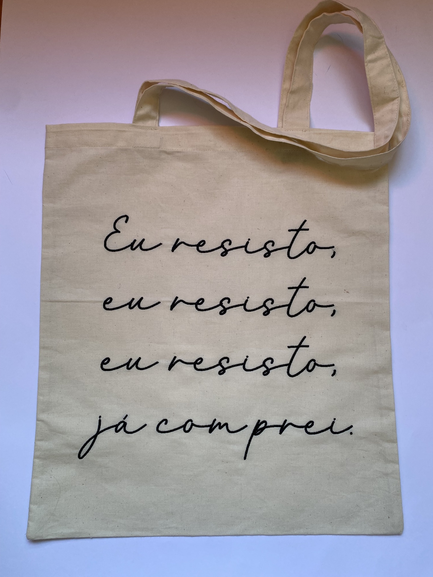 Home Frases TOTE BAG “EU RESISTO” TOTE BAG “EU RESISTO” 25,00 € Desconto de %. Comprar Contactar Tote Bag para levar a qualquer lado! Este saco é feito em pano cru e está personalizado com a frase "eu resisto, eu resisto, eu resisto, já comprei" bordada. Dimensões aproximadas: 37 cm x 43 cm Tags saco tecido personalizadosaco de tecidotote bagbordado personalizadosaco tecido bordado Características Partilhar